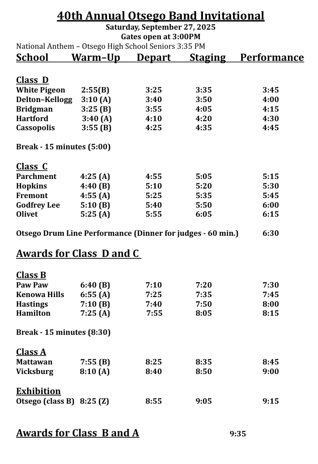 It takes an entire community to host an event like the Otsego Band Invitational. It's going to be a great event, and we couldn't do it without our wonderful volunteers!